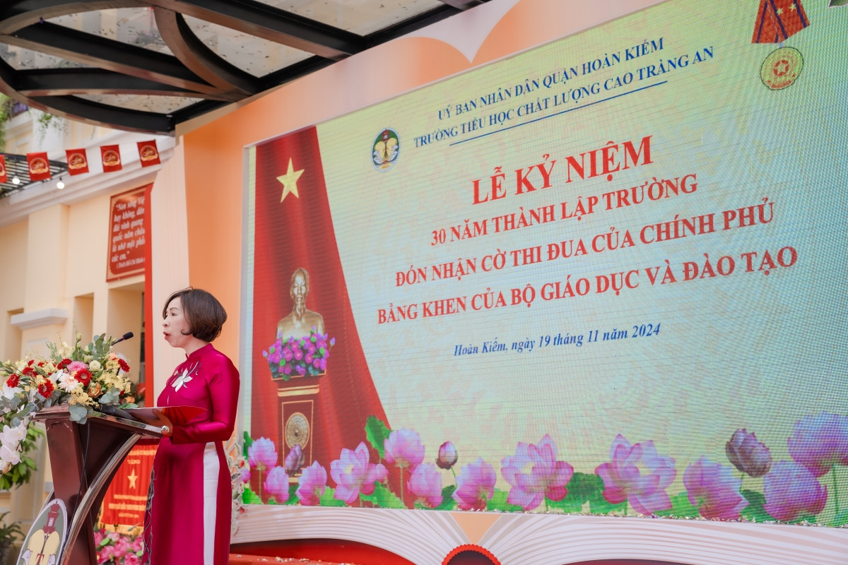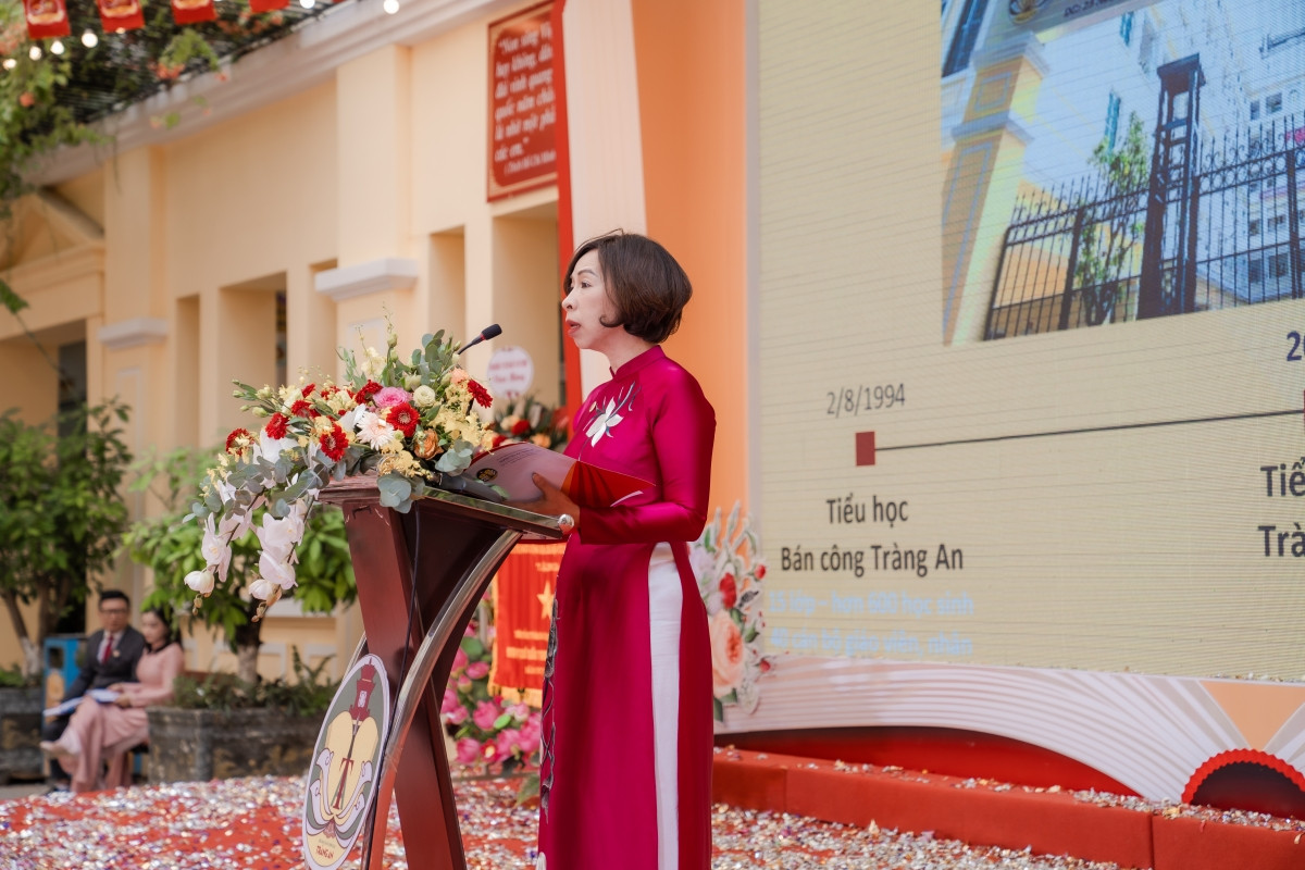 Thay mặt đội ngũ cán bộ, giáo viên, nhân viên và gần 900 học sinh Trường Tiểu học chất lượng cao Tràng An, Nhà giáo ưu tú Trần Thị Bích Liên - Hiệu trưởng nhà trường đã điểm lại chặng đường xây dựng và phát triển 30 năm qua.