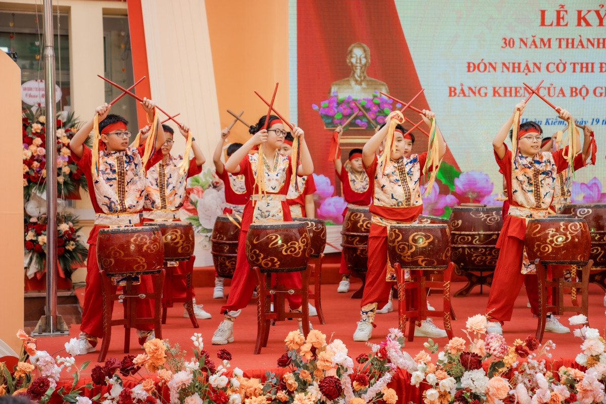 Mở đầu chương trình là màn trình diễn trống hội hùng tráng và tưng bừng ,với sự tham gia của 30 học sinh tiêu biểu khối 5, tượng trưng cho chặng đường 30 năm không ngừng phấn đấu và phát triển vững mạnh của trường Tiểu học CLC Tràng An.