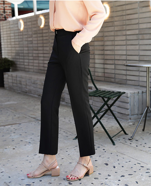 Diện quần vải đen cùng sơ mi, bạn có phong cách thanh lịch để đi làm. Kết hợp cùng áo phông và giày thể thao, bạn trông lại đầy năng động. Đừng ngại sắm một chiếc quần đen phom dáng vừa vặn, cạp cao vừa đủ, ống không quá dài để giúp thân hình trông mảnh mai hơn.