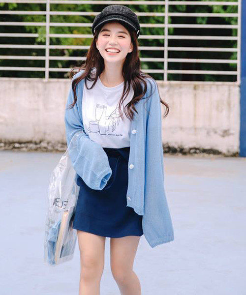 Những ngày giao mùa, chỉ cần diện cardigan bên ngoài một chiếc áo phông mùa Hè là bạn đã không lo bị lạnh mà trông vẫn rất xì tai.
