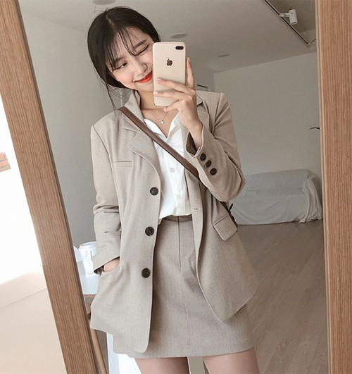 Kiểu mix đồ cả bộ suit gồm blazer với chân váy hay quần vải cùng tông được các cô gái mê tít mùa Thu này.