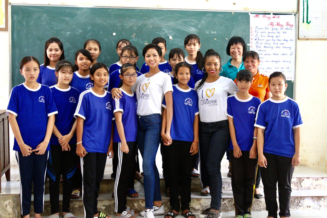 Thật ngạc nhiên là các chị chẳng hề “bánh bèo” điệu đàng như tớ thường nghĩ về các hoa hậu. Ngược lại, các chị đều ăn mặc rất giản dị và sẵn sàng trò chuyện, nắm tay tụi tớ thân mật khi giao lưu. Và cũng khác với cả những hình dung của tớ rằng hoa hậu, người đẹp chắc chắn phải là con nhà giàu có, tiểu thư công chúa, các chị đều có những tuổi thơ rất khó khăn ở vùng sâu vùng xa, không khác gì mấy với cuộc sống của bọn tớ ở đây.