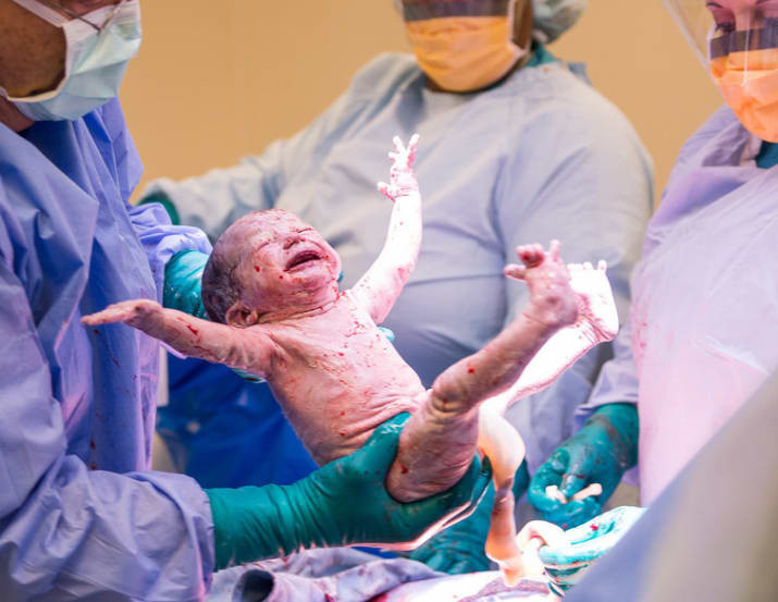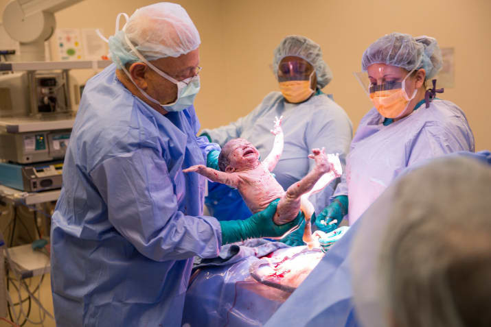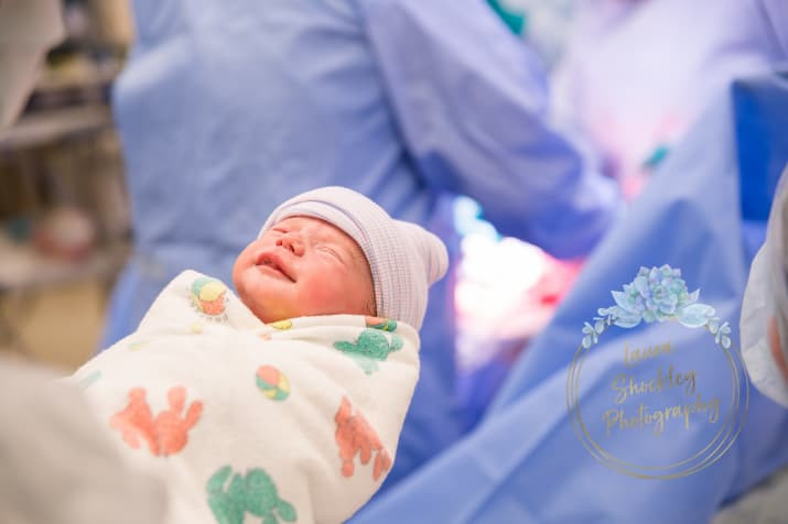 Thật không dễ dàng cho sản phụ này nhưng cả cô và bác sĩ đã nỗ lực hết mình và điều kì diệu đã xảy ra - đứa trẻ được chào đời. Niềm vui nhân đôi khi mới sinh ra em bé đã cười toét miệng như hiểu được sự lo lắng và háo hức của cả nhà đang chờ đón em. Trong khoảnh khắc ấy, Laura Shockley - nhiếp ảnh gia của Taylor đã kịp ghi lại khoảnh khắc tuyệt vời nhất từ trước đến nay.