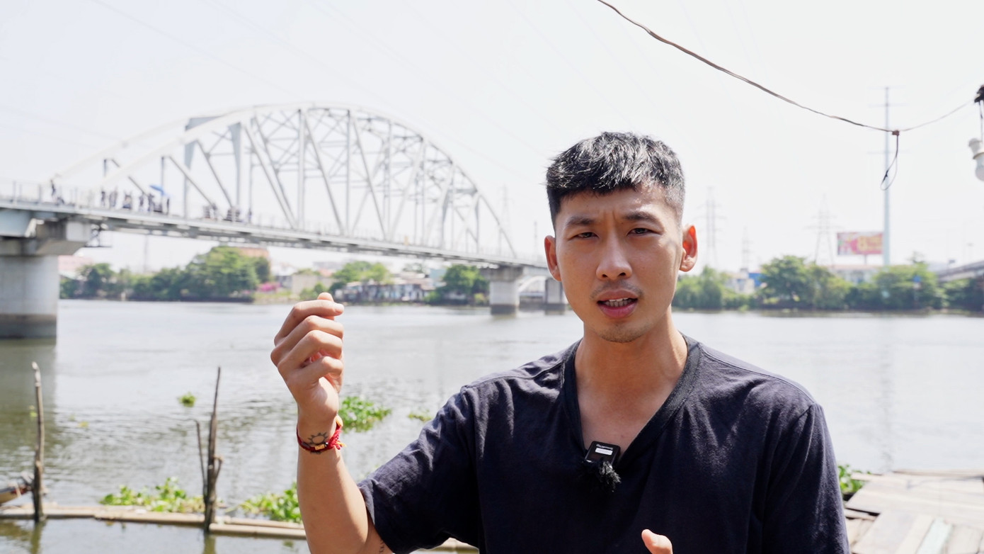 | Tuấn Trần có cảnh quay nhảy từ trên cầu xuống sông. |