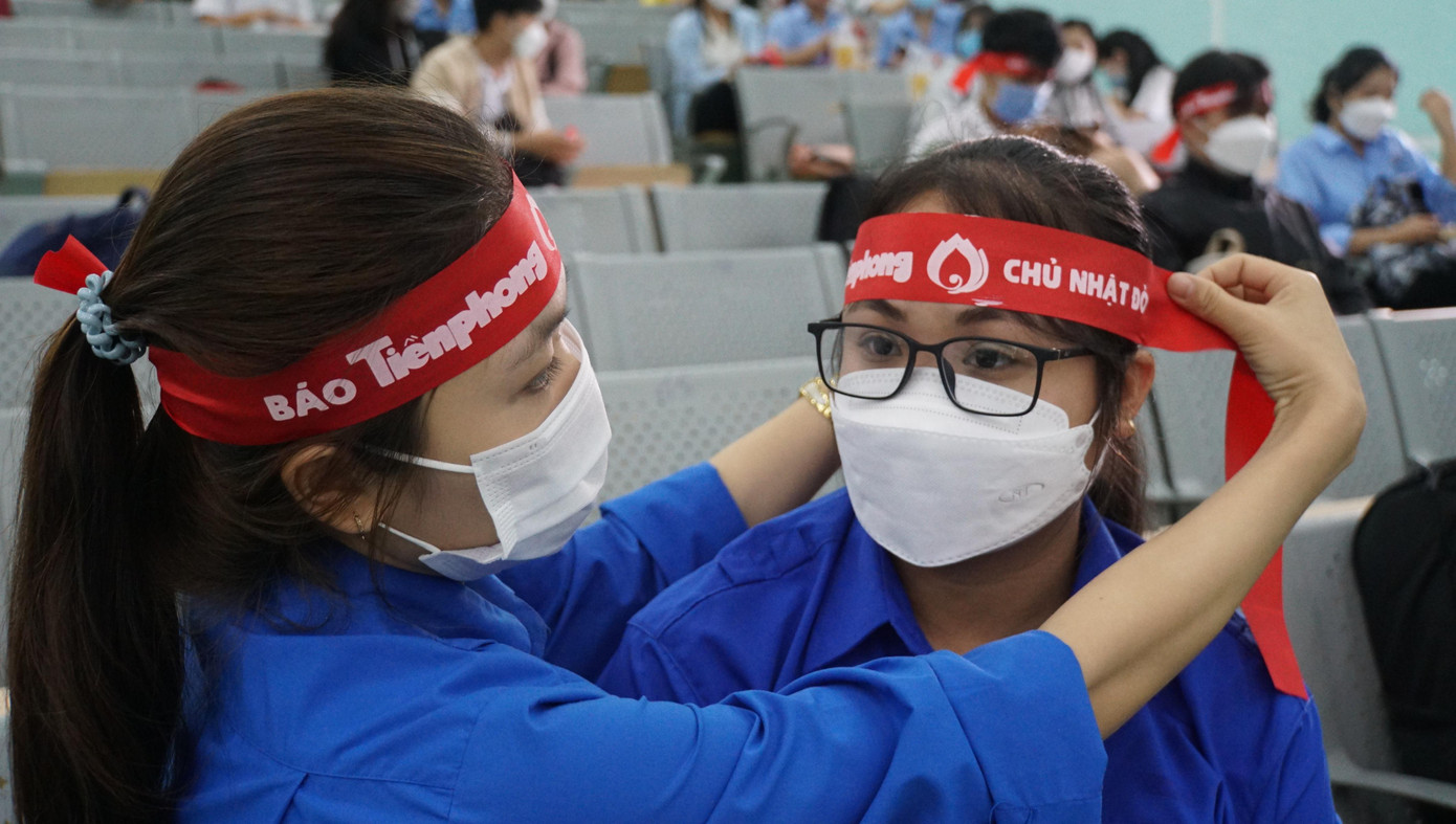 | Các bạn sinh viên háo hức tham gia Chủ nhật Đỏ. - Ảnh: Hòa Hội |