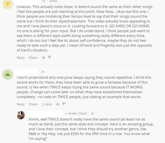 Tranh luận về âm nhạc của KARD trên một trang thông tin