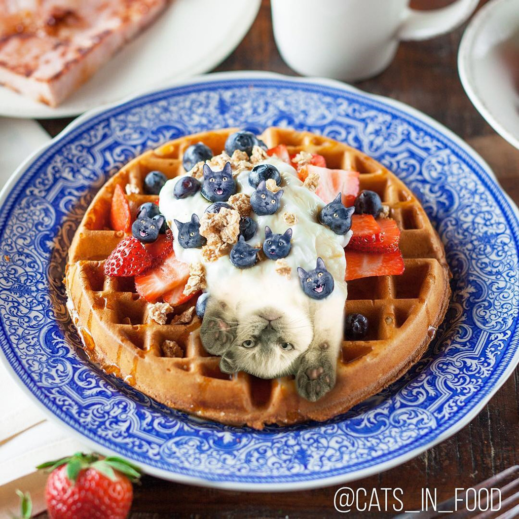 Bộ ảnh vẫn liên tục được cập nhật từ tháng 1/2018. Thức ngon hấp dẫn từ Tây sang Á được bày biện chỉn chu khiến người xem thích thú. Đặc biệt, bằng óc sáng tạo và kỹ năng photoshop điêu luyện, tác giả lồng ghép mặt mèo vào tất cả món ăn khá tinh tế, đồng điệu, tạo dấu ấn khác biệt.