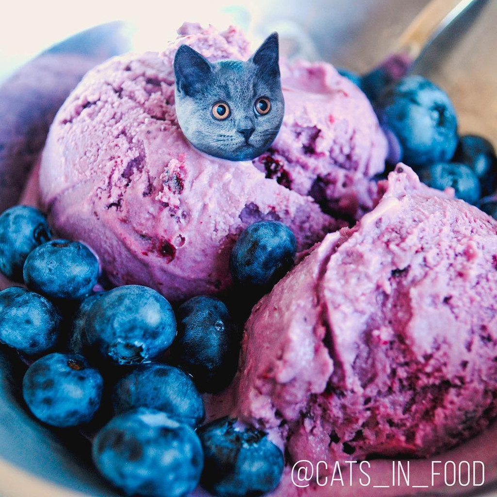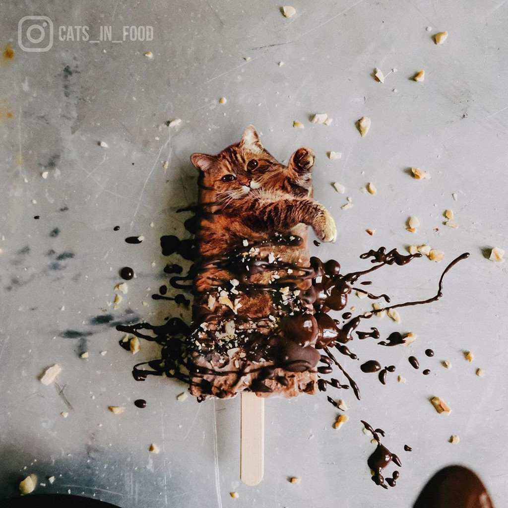 Nữ họa sĩ người Nga Ksenia Zmanovskaya khéo léo giấu các chú mèo trong món ăn đẹp mắt bằng Photoshop khiến người xem bất ngờ. Những bức ảnh được đặt tên là "Cats In Food". Hội yêu mèo chắc hẳn sẽ không thể kiềm lòng trước hình ảnh đáng yêu, ngây ngô của "boss" trong sự kết hợp lạ lùng này.