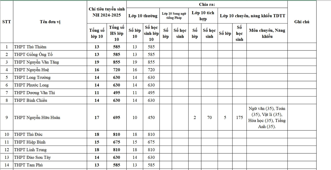 Riêng với trường THCS - THPT Trần Đại Nghĩa, Sở GD&ĐT TP.HCM cho biết sẽ ban hành quyết định giao chỉ tiêu tuyển sinh lớp 10 năm học 2024 - 2025 bổ sung cho trường sau khi hoàn thiện đề án tách trường THPT chuyên Trần Đại Nghĩa.
