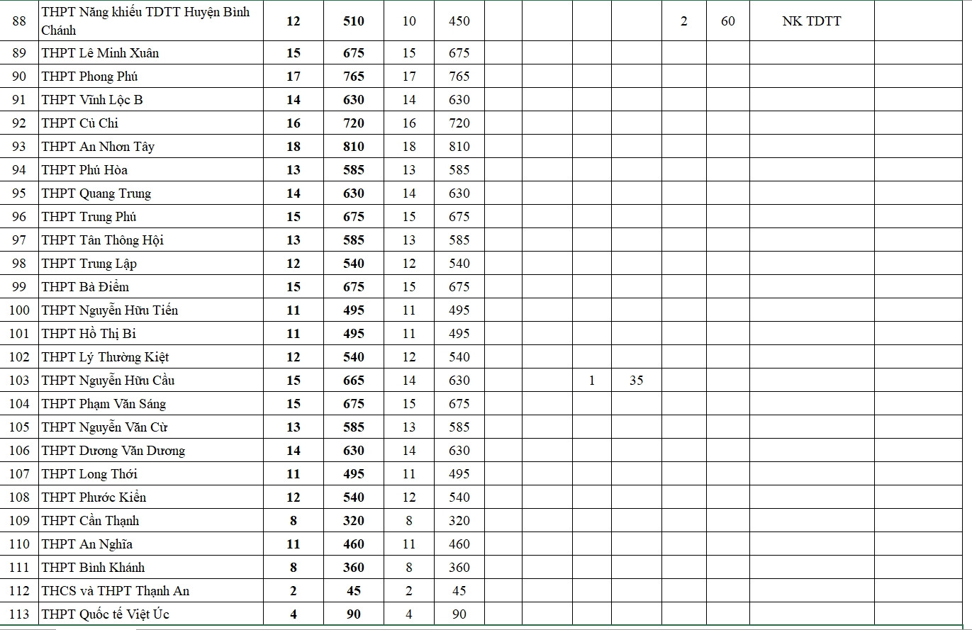 Ở nhóm trường tăng chỉ tiêu, ghi nhận, Trường THPT Long Thới tăng nhiều nhất với 135 chỉ tiêu, THPT Nguyễn Văn Tăng, THPT Giồng Ông Tố tăng 90 chỉ tiêu; 14 trường còn lại tăng từ 10 đến 45 chỉ tiêu.