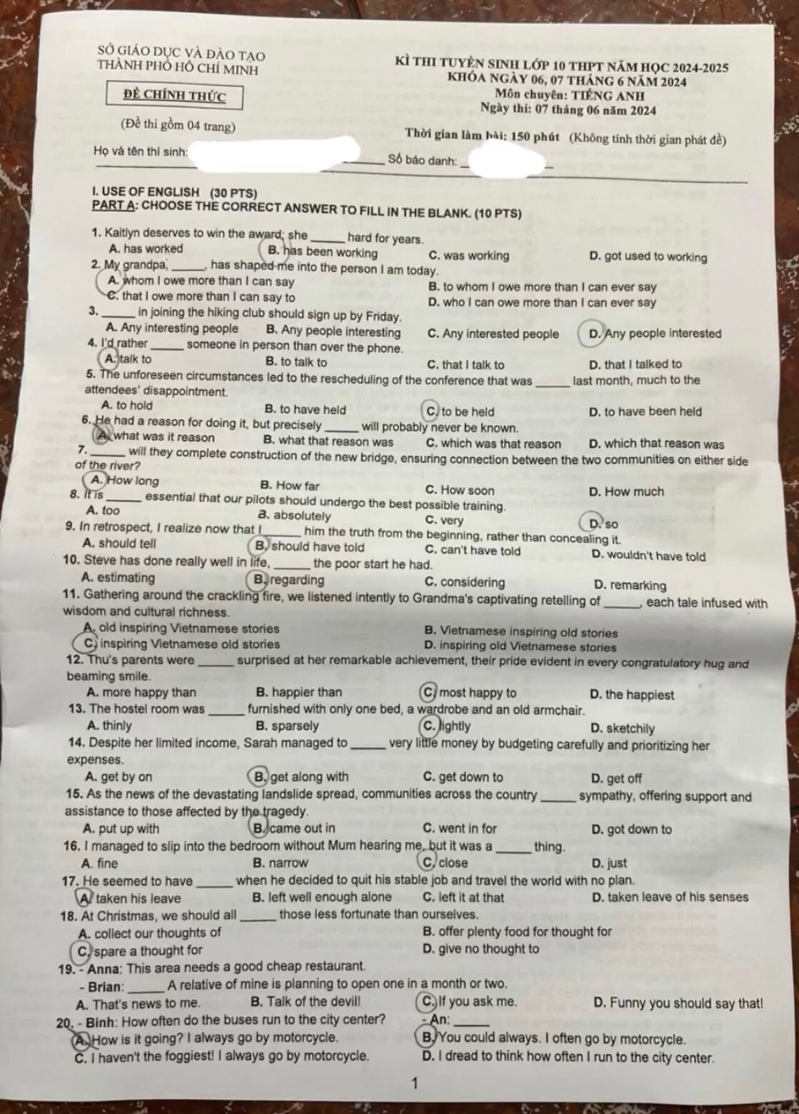 | Đề chuyên Anh văn chính thức kỳ thi vào lớp 10 năm học 2024 - 2025. Ảnh: Xuân Mai |
