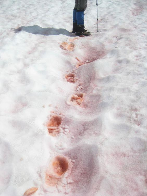Tuyết dưa hấu thường xuất hiện ở độ cao hơn 2.895 m, có thể có màu hồng hoặc thậm chí là màu đỏ trong những tháng mùa hè. Màu sắc kỳ lạ này được tạo ra bởi một loại tảo trên tuyết có tên Chlamydomonas nivalis, phát triển mạnh ở nhiệt độ đóng băng và nước lỏng.