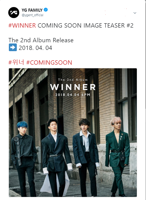 Một nhân tố đáng mong đợi tiếp theo đó là 4 anh chàng WINNER đến từ nhà YG. Theo đó hôm 23/3, WINNER đã tung ảnh nhá hàng của 4 thành viên cho lần trở lại vào ngày 4/4 tới đây.