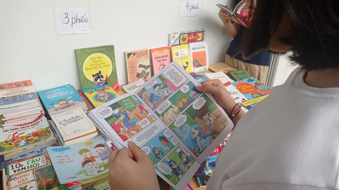 Cụ thể, tween sẽ đóng góp sách truyện vào gian hàng đổi sách của lớp mình, mỗi quyển sách tương ứng với 1-3 phiếu đổi sách. Các bạn cũng được sử dụng phiếu để đổi lấy cuốn sách mình yêu thích.