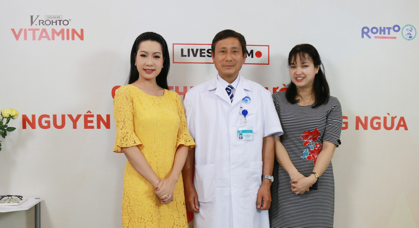 Nhằm giúp mọi người hiểu hơn về cận thị học đường và có thêm kiến thức chăm sóc mắt để phòng ngừa cận thị cho trẻ, nhãn hàng thuốc nhỏ mắt V.Rohto Vitamin thuộc công ty Rohto-Mentholatum (Việt Nam) đã tổ chức buổi tư vấn trực tuyến với chủ đề Cận thị học đường: Nguyên nhân và cách phòng ngừa trên fanpage V.Rohto Việt Nam. Chương trình có sự tham gia của PGS-TS Trần An - nguyên PGĐ bệnh viện Mắt Trung ương, Dược sĩ Nguyễn Thị Ngọc Thu - đại diện công ty Rohto-Mentholatum (Việt Nam) và MC/ diễn viên Trịnh Kim Chi.