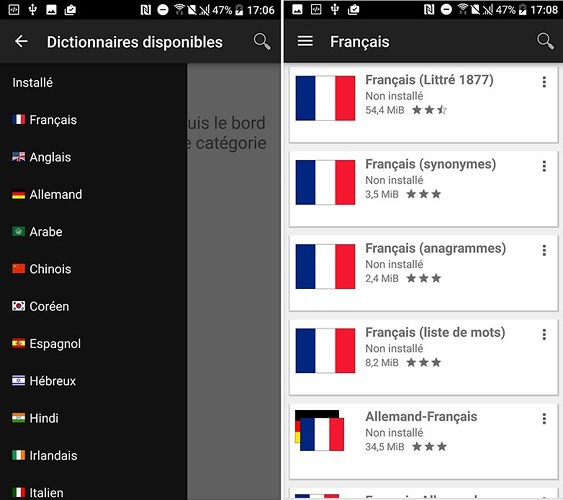 Ứng dụng Dictionnaires hors-ligne chứa kho từ điển với nhiều thứ tiếng. Những từ điển này đều có nguồn gốc rõ ràng và bạn có thể dễ dàng dùng chúng offline.