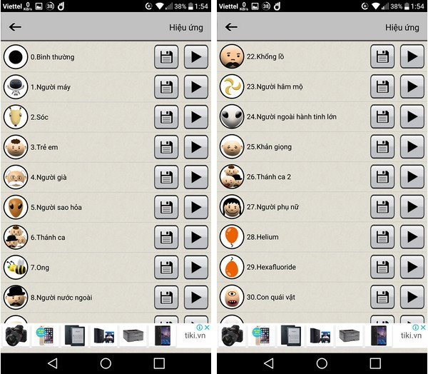 Sau khi đã ghi âm hoặc chọn được file âm thanh cần xử lý giọng nói, ứng dụng sẽ cho phép người dùng lựa chọn kiểu giọng nói mà bạn muốn biến đổi cho giọng nói trên file âm thanh.