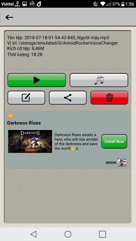 Sau khi lưu file âm thanh đã xử lý chất giọng, một giao diện mới hiện ra cho phép người dùng nghe lại file âm thanh đã được biến đổi chất giọng, cắt bớt nội dung của file âm thanh (nếu muốn) hoặc chia sẻ file âm thanh đã được biến đổi giọng nói này cho người khác.