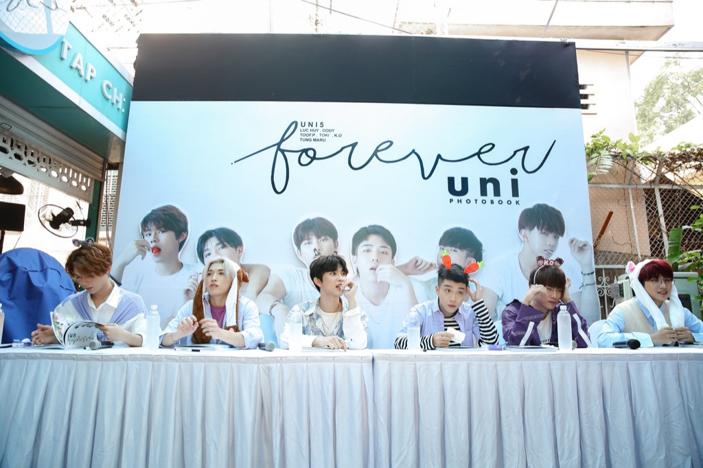 Buổi kí tặng diễn ra tại đường sách Nguyễn Văn Bình (Tp.HCM) của Uni5 đã thu hút hơn 300 fan dự. Không chỉ được sở hữu cả 6 chữ kí của thần tượng, danh sách các Uni may mắn (tên cộng đồng fan Uni5) còn được tặng quà riêng và chụp ảnh cùng Uni5.
