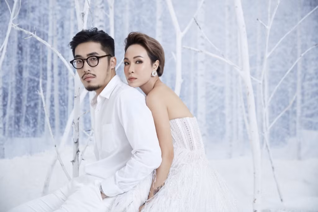 Uyên Linh và nam diễn viên chính tại hậu trường MV "Mùa Đông Chưa Bao Giờ Tới"
