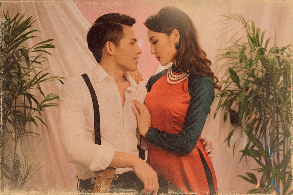 Trong bộ hình đậm màu hoài cổ, Quốc Thiên hóa quý ông lịch lãm khi quấn quýt bên 2 mỹ nhân xinh đẹp, dịu dàng. Quốc Thiên tiết lộ, bộ hình được thực hiện đúng trên tinh thần, cảm xúc mà dự án Tuyệt Phẩm Song Ca hướng tới và cả Phương Linh, Uyên Linh đều rất thoải mái khi chụp những bức hình tình tứ cùng anh.