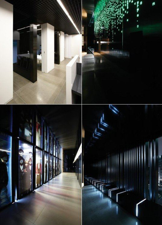 Còn khi sang YG Ent, đây lại là thánh địa của màu đen. Màu đen tràn ngập khắp nơi, kèm theo hệ thống đèn được thiết kế rất độc đáo, khiến không gian càng thêm bí ẩn.