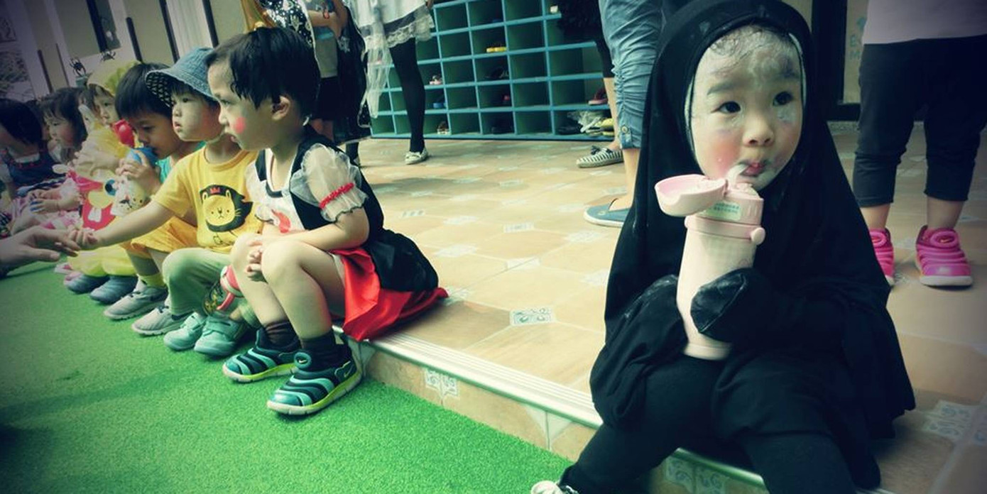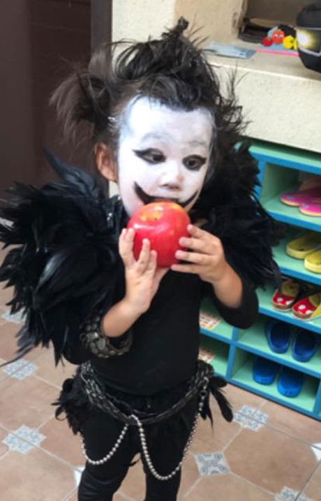 Halloween năm ngoái, Momo Lu hóa trang Vô Diện đến lớp, nổi bật giữa rừng công chúa hoàng tử.
