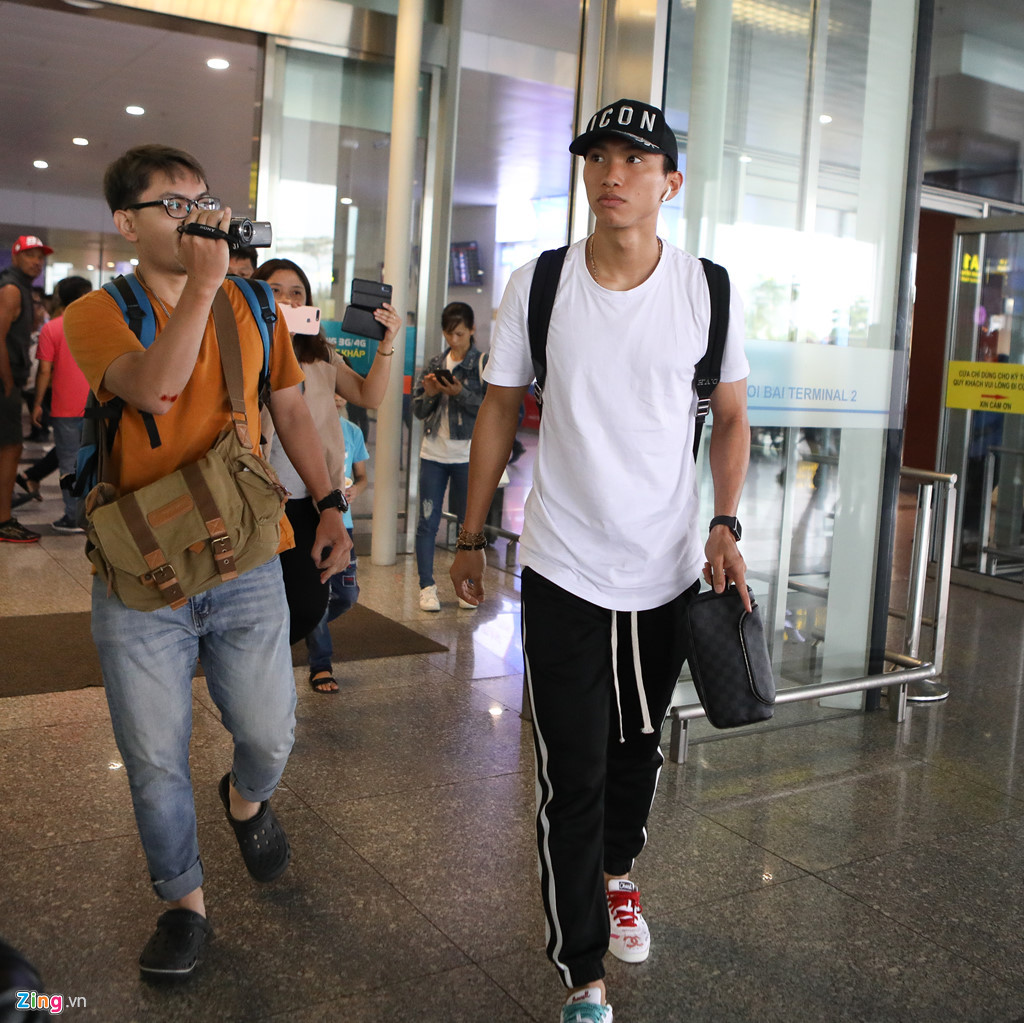 Trải qua chuyến bay dài nhưng Văn Hậu không thể hiện sự mệt mỏi. Anh vui vẻ chụp hình cùng người hâm mộ. Không có nhiều CĐV đón Văn Hậu ở chuyến trở về này. Anh không ngại đáp lại tình cảm của người hâm mộ.