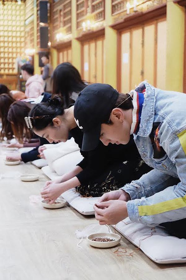 Dù nhiệt độ trung bình ở riêng khu vực Gangneung và Pyeongchang dao động từ -3 đến 7 độ C và có tuyết rơi dày đặc, nhưng Văn Mai Hương và Bình An vẫn vui vẻ chơi đùa, chụp hình kỉ niệm cùng nhau. Riêng khi đến thăm chùa Woljeongsa, cả hai còn có cơ hội trải nghiệm cách làm tràng hạt với sự hướng dẫn của sư thầy.