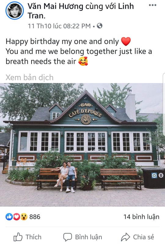Gần đây nhất trên trang cá nhân của mình, Văn Mai Hương đã gửi lời chúc ngọt ngào tới một chàng trai lạ mặt bằng tiếng Anh. Điều này khiến nhiều người tin chắc rằng đây chính là "chú rể" trong lễ cưới sắp tới của nữ ca sĩ.