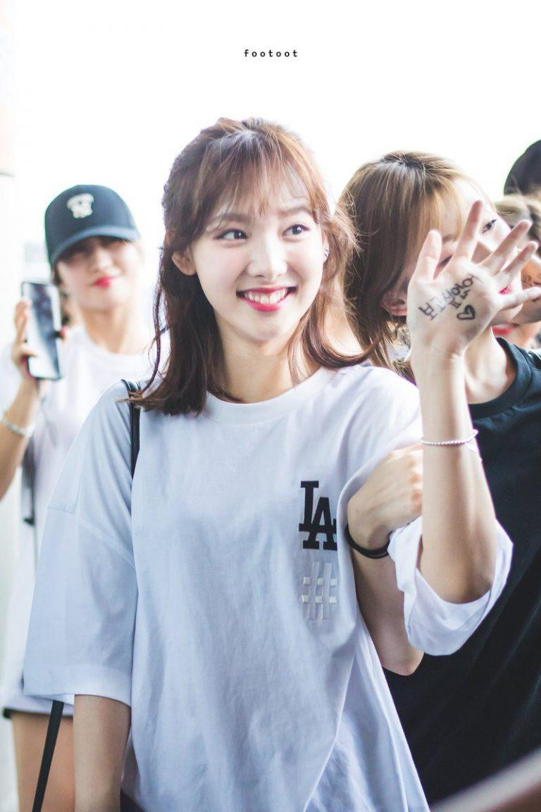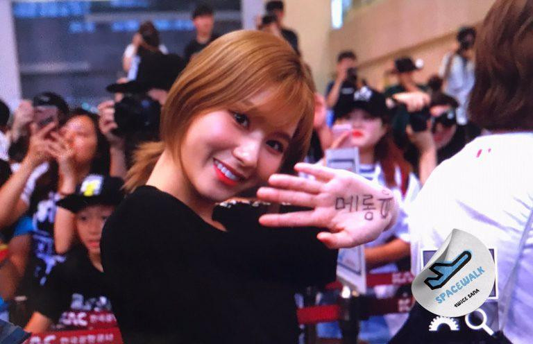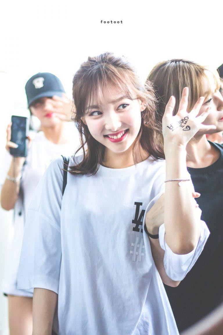 Khi ra sân bay để bay sang Nhật Bản, Nayeon đã viết dòng chữ “보고싶었어” (Mình nhớ các bạn) lên lòng bàn tay trái, để nhắn nhủ với các ONCE rằng Nayeon rất nhớ mọi người khi đi xa.