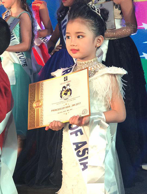 Nguyễn Ngọc Bảo Anh (sinh năm 2012, đến từ Hải Phòng) vừa đăng quang danh hiệu Công chúa châu Á - Princess of Asia tại Junior Model International - cuộc thi lớn dành cho người mẫu nhí từ 5 - 12 tuổi trên toàn thế giới.