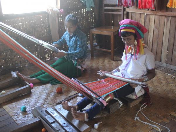 Qua những cánh đồng và ngôi nhà “mọc” lên từ mặt nước, chúng tôi đến với một khu chợ địa phương có nhiều nông sản và hàng lưu niệm thủ công mỹ nghệ. Tôi chết mê với một chiếc đồng hồ nhỏ hình quả cầu pha lê có giá 60 đôla Mỹ, nhưng đã kịp thời kiềm chế. Cuối cùng, Max mua cho cô bạn gái một bó bông súng tím, còn anh trai kết nghĩa mua cho tôi một nải chuối cơm (thật lãng mạn!). Thuyền tôi tiếp tục rẽ sóng để đi đến một ngôi nhà của những người dân tộc cao cổ. Các cô gái được bắt đầu đeo kiềng đồng để… làm đẹp khi vào tuổi dậy thì và những vòng kiềng sẽ được nối dài thêm qua nhiều năm cho đến cả khi dài gang tay. Nhà của người cao cổ hay nơi sản xuất thuốc lá quấn bằng lá trầu và xưởng dệt vải từ nhựa cuống lá sen mà người lái thuyền dẫn chúng tôi đi đều là những mô hình đã được du lịch hóa. Những làng nghề cũ được phục dựng cho du khách ghé thăm nhưng người dân không còn sản xuất đại trà vì kỹ thuật thô sơ và năng suất thấp.