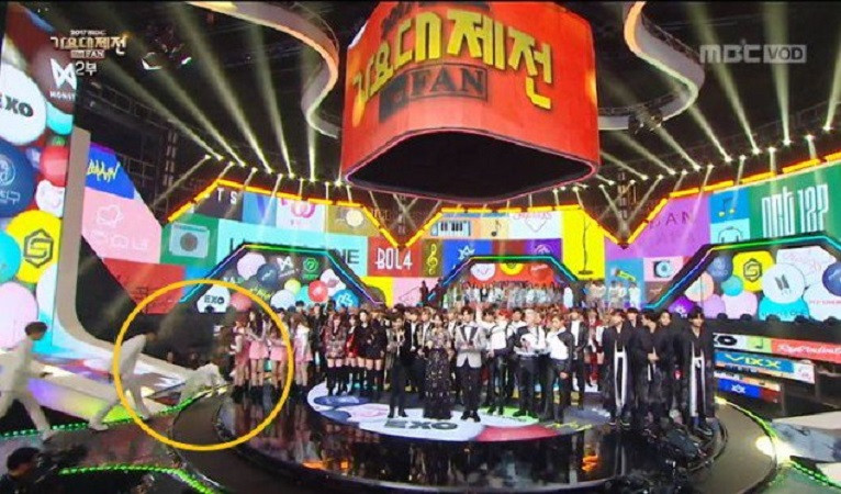 Mọi thứ vẫn ổn cho đến phút cuối cùng, khi toàn bộ các nghệ sĩ cùng bước ra sân khấu để chào khán giả và đếm ngược chào đón năm mới 2018. Vì sân khấu được thiết kế theo hình tròn, lại khá nhỏ trong khi có quá nhiều nghệ sĩ cùng xuất hiện nên nhiều người phái đứng ra mép ngoài cùng.