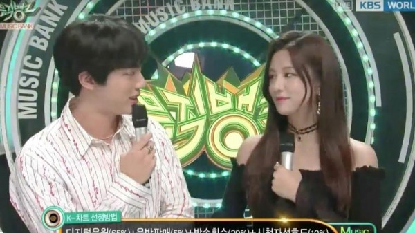 Còn nhớ hồi đầu năm 2018, Solbin (Laboum) cùng Jin (BTS) đã từng bị nghi ngờ đang hẹn hò bí mật. Hai người vốn cùng làm MC cho chương trình Music Bank nên có nhiều thời gian làm việc chúng. Vào ngày Solbin nói lời tạm biệt với vị trí này, Jin có đến phòng chờ của cả nhóm Laboum để chúc mừng Solbin đã hoàn thành tốt công việc của mình. Và chẳng ngờ khi Jin rời đi, Solbin lại gọi rõ tên thật của anh chàng “Này, Kim Seok Jin”.