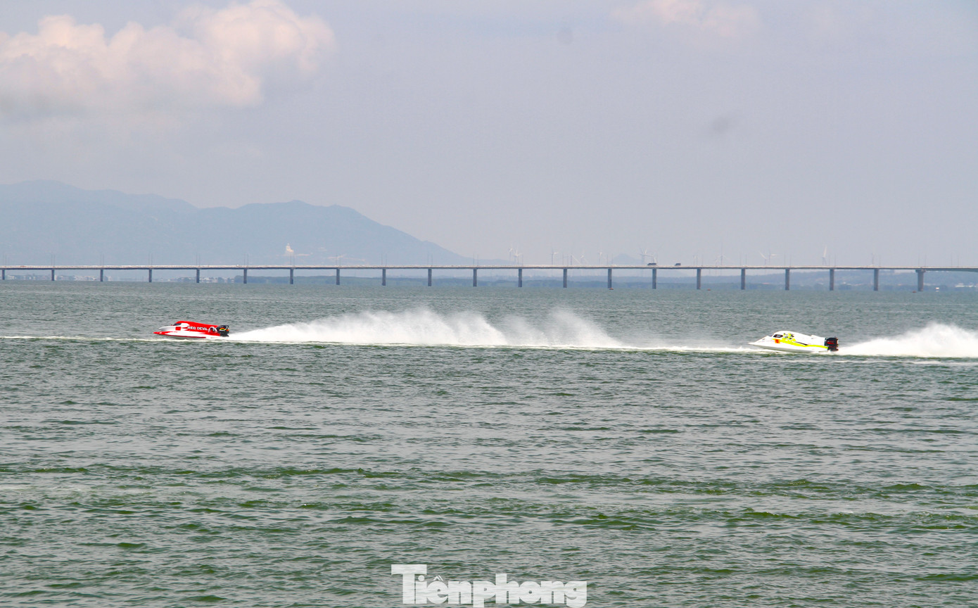 | Các tay đua lướt như bay trên đầm Thị Nại, với tốc độ lên đến 250km/h. Ảnh: Trương Định |