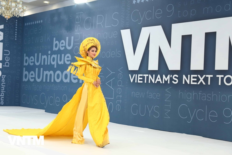 Một thí sinh đã chọn áo dài truyền thống làm trang phục dự thi.