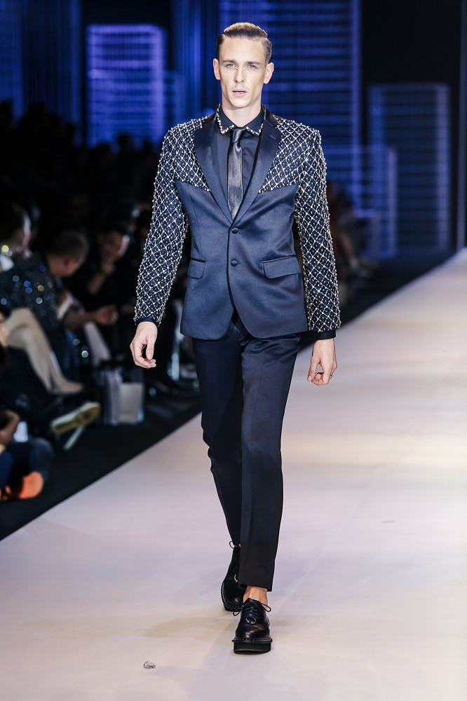 Bộ sưu tập Mr. Meuw của NTK Chung Thanh Phong chỉ với 3 gam màu chủ đạo là đen, trắng và bạc nhưng không hề đơn điệu.