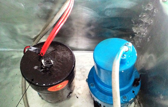 Thiết bị hoạt động bằng nguồn điện là bình ắc quy. Thiết bị đặt bên trong dưới đáy ghe tàu, khi vận hành nhờ vào thiết bị tự động. Khi nước vào ghe, phao nổi sẽ dâng lên theo áp lực của mực nước làm chạm mạch điện ở phía trên phao. Khi đó, tín hiệu đèn và còi báo động sẽ hoạt động. Đồng thời, hệ thống motor sẽ tự động bơm nước trong tàu, ghe ra ngoài.