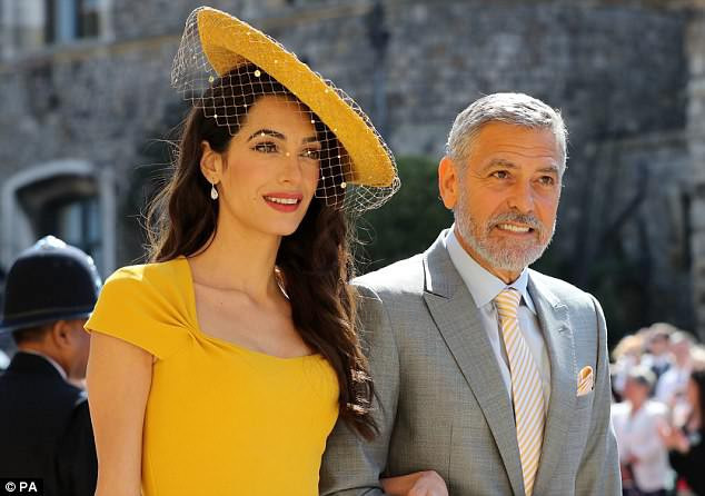 Nhìn sang một cặp đôi ngôi sao khác là diễn viên George Clooney và luật sư Amal Clooney, rất dễ thấy họ vui vẻ rạng rỡ, hợp không khí đám cưới hơn hẳn. Đây cũng là cặp đôi khách mời được đánh giá là mặc đẹp nhất tại đám cưới này.