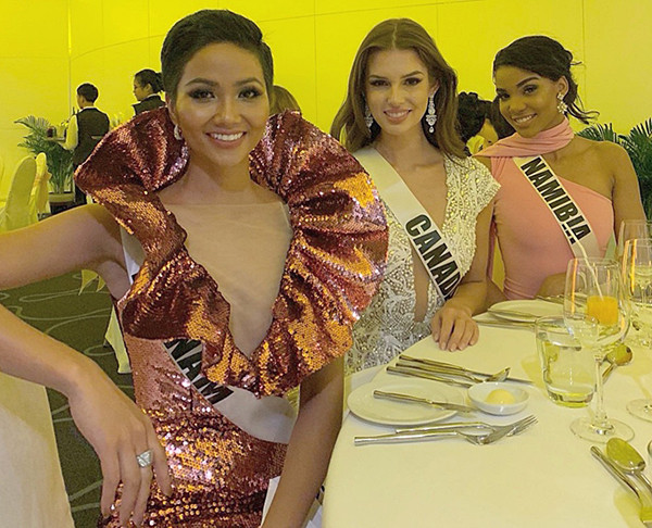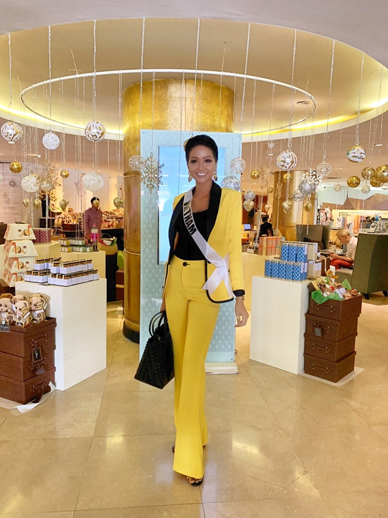 Tuân thủ đúng yêu cầu dresscode của BTC là một trong những yếu tố giúp H'Hen Niê ghi điểm ở Miss Universe lần này. Sáng 5/12, một vài thí sinh được đến thăm một bệnh viện cùng bà Paula Sugart - Chủ tịch tổ chức Miss Universe. Trong hoạt động này, BTC yêu cầu các thí sinh mặc trang phục màu vàng.