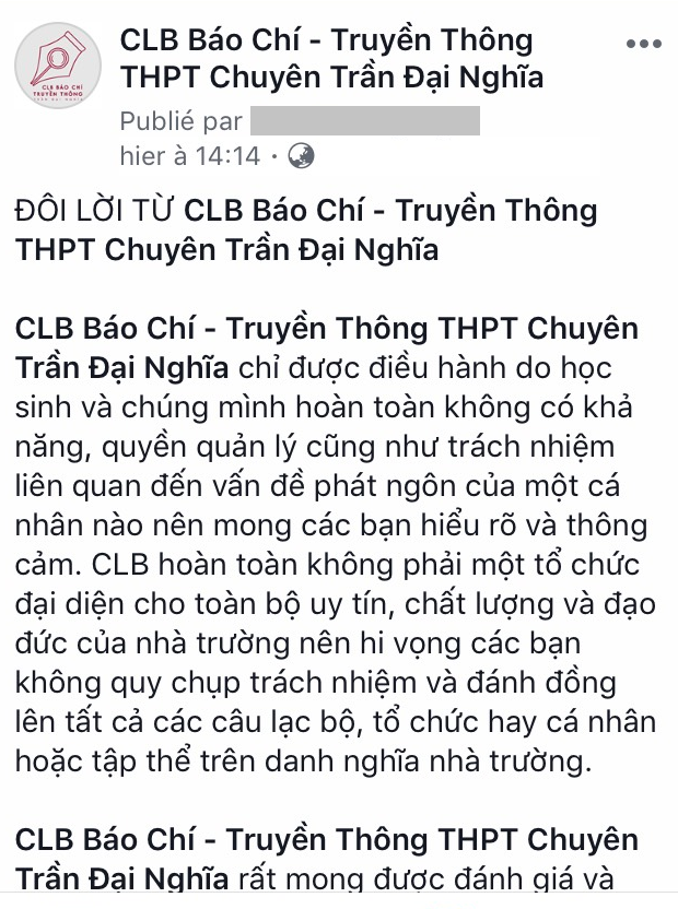 Lời "khẩn cầu" từ Ban chủ nhiệm CLB Báo chí - Truyền thông THPT chuyên Trần Đại Nghĩa.