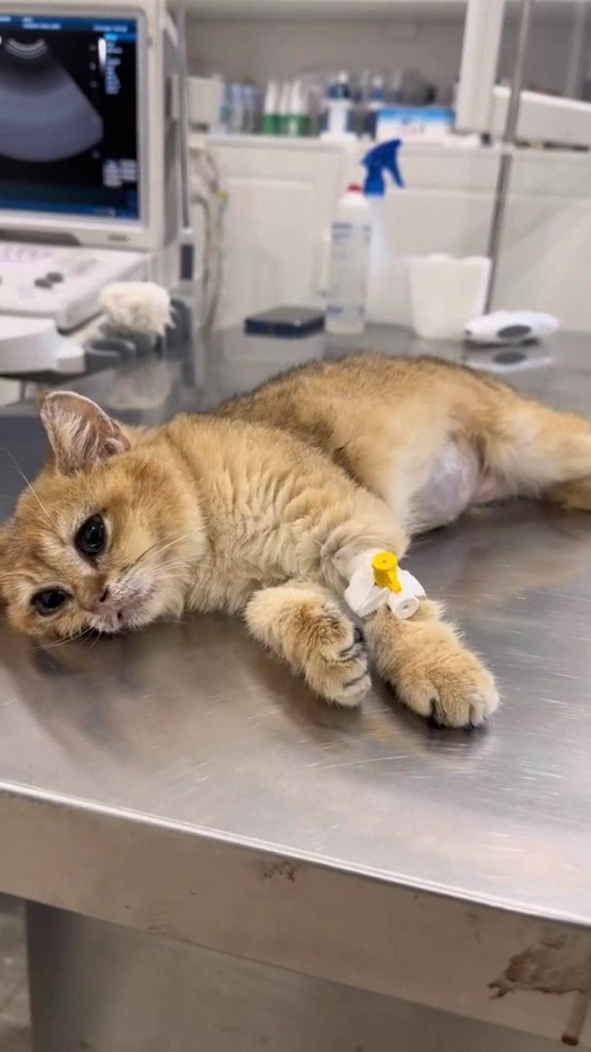 Bạn U.N. - chủ của chú mèo bị bạo hành cho biết, cô đã bỏ hết công việc để tập trung chữa trị cho mèo Gold trong 14 ngày qua. Bé mèo đã được tiến hành rút dịch khoang ngực 3 lần để đỡ bị chèn ép phổi, gây khó thở.
