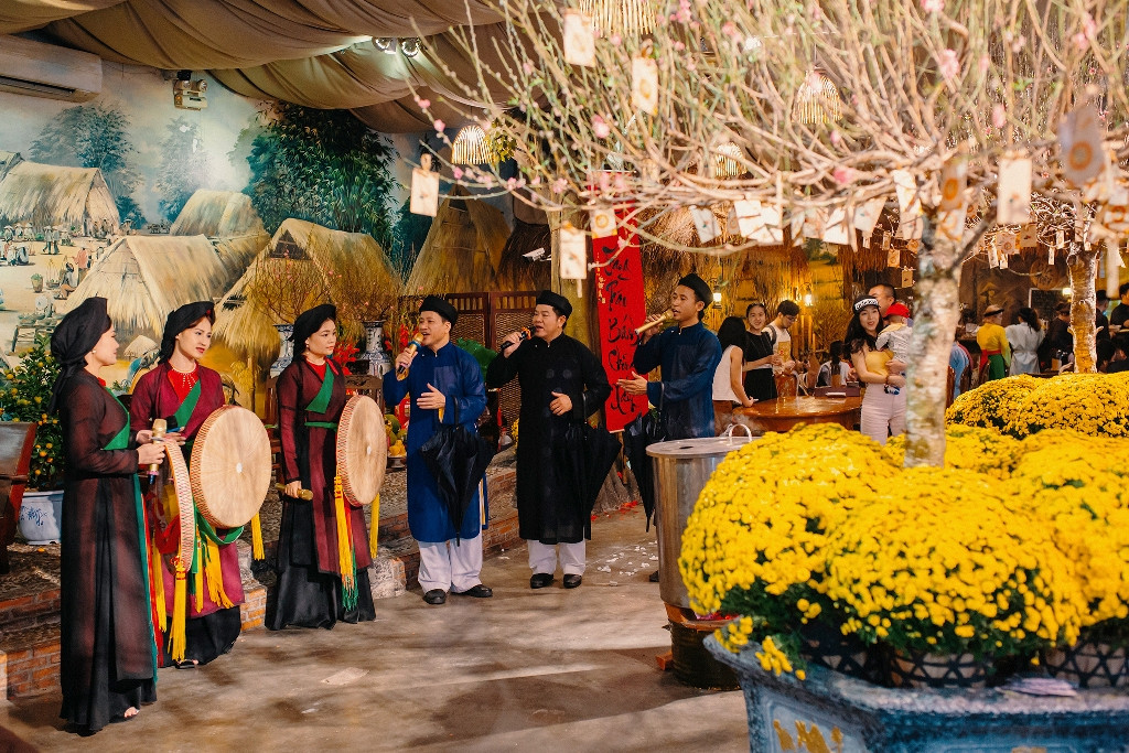 Không những ẩm thực đặc sắc mà các trò chơi dân gian thời xa xưa của trẻ thơ cũng được phục dựng: ô ăn quan, kéo co, chơi bài quẹt lọ nồi,… Đến cả những hoạt động văn hoá miền quê như: Xin tò he, xin xăm đầu năm, xin chữ ông đồ, câu đối… cũng có trong không gian của buổi du xuân. Đây là những hoạt động mang đậm chất xưa mà đã từ lâu chẳng còn thấy xuất hiện ở ngày Tết nữa.