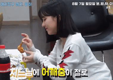 Gà rán cũng là món ăn quốc dân của người Hàn, gà rán và bia còn là cặp đôi hoàn hảo, ăn ngon bao nhiêu nhưng cũng béo bấy nhiêu. Eunha (G-Friend), Park Jihoon (Wanna One), Joy (Red Vevet), Cheng Xiao (Cosmic Girls), Kai (EXO) đều nhiều lần phải lựa chọn khó khăn: Gà rán hay giữ dáng. Và dĩ nhiên phần thắng thường xuyên nghiêng về đĩa gà rán thơm nức.