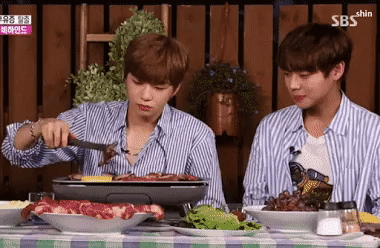Thịt nướng không chỉ được người Hàn ưa thích, mà cả thế giới đều chuộng món ăn siêu ngon siêu béo này. WinWin (NCT), Ha Sungwoon (Wanna One), Seulgi và Yeri (Red Velvet), Hyejeong (AOA), Hyungwon (Monsta X), The8 (Seventeen) đều thuộc hội không thể cưỡng nổi mùi thơm của thịt nướng. Chỉ cần được nhâm nhi thịt nướng thoải mái, là những nhân vật này thấy đời lên mây ngay.