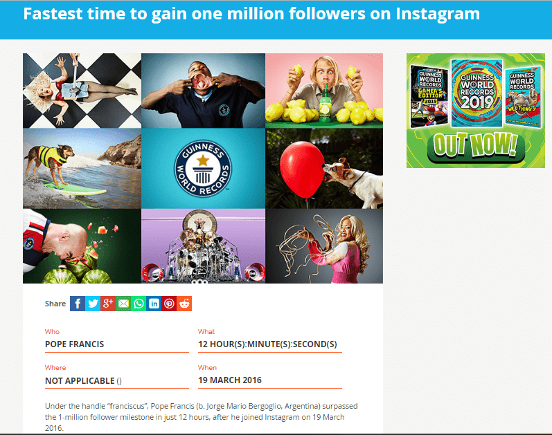 Tính đến hiện tại, theo trang web của kỷ lục Guinness thế giới, người đang nắm giữ kỷ lục Tài khoản Instagram đạt 1 triệu người theo dõi nhanh nhất thế giới là Giáo Hoàng Pope Francis với thời gian là 12h. Như vậy, Kang Daniel đã mất ít thời gian hơn để đạt đến cột mốc này, đồng nghĩa với việc đây hoàn toàn có thể trở thành một kỷ lục thế giới mới nếu Guinness thế giới công nhận thành tích của Kang Daniel. Các fan của chàng "Center Quốc dân" hiện đang hồi hộp chờ lời hồi đáp từ Guinness.