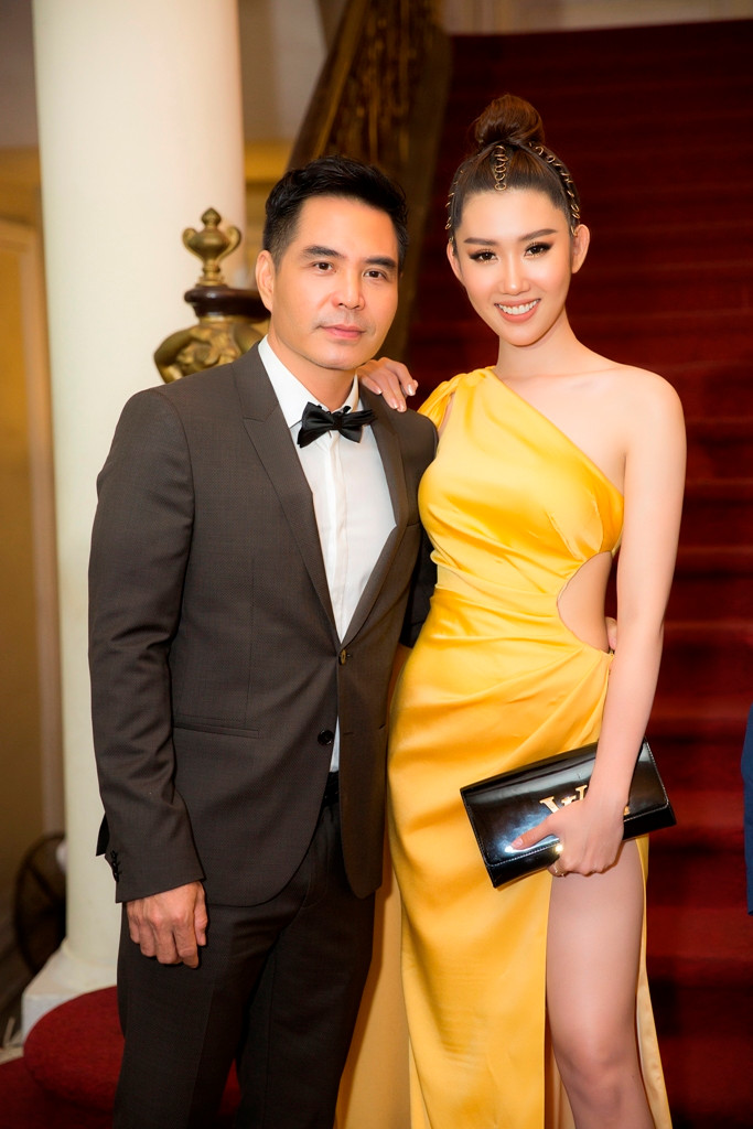 Tối 12/1, lễ trao giải Mai Vàng đã diễn ra tại TP.HCM. Trên thảm đỏ, Thúy Ngân khoác tay đàn anh - diễn viên Trung Dũng và rạng rỡ chụp hình kỷ niệm.