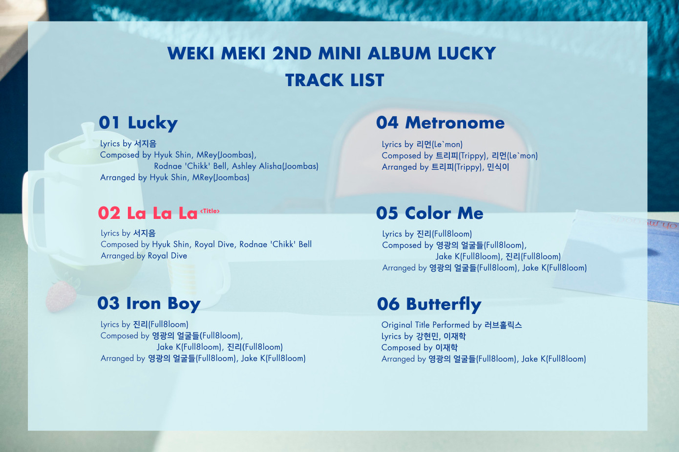 Các cô gái sẽ comeback với mini-album thứ 2 có tên Lucky vào ngày 21/2/2018 tới đây. Album bao gồm 6 bài hát là Lucky, La La La (tittle), Iron Boy, Metronome, Color me, Butterfly. Góp sức vào việc sản xuất mini-album lần này của Weki Meki là những nhà sản xuất đã tạo nên thành công của Monster, Lotto (EXO), Why (Taeyeon), Mr. Mr. (SNSD),... Nhiều fan dự đoán ca khúc chủ đề La La La sẽ là một bản EDM sôi động.