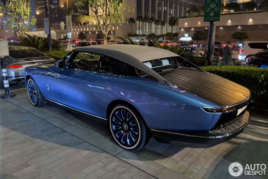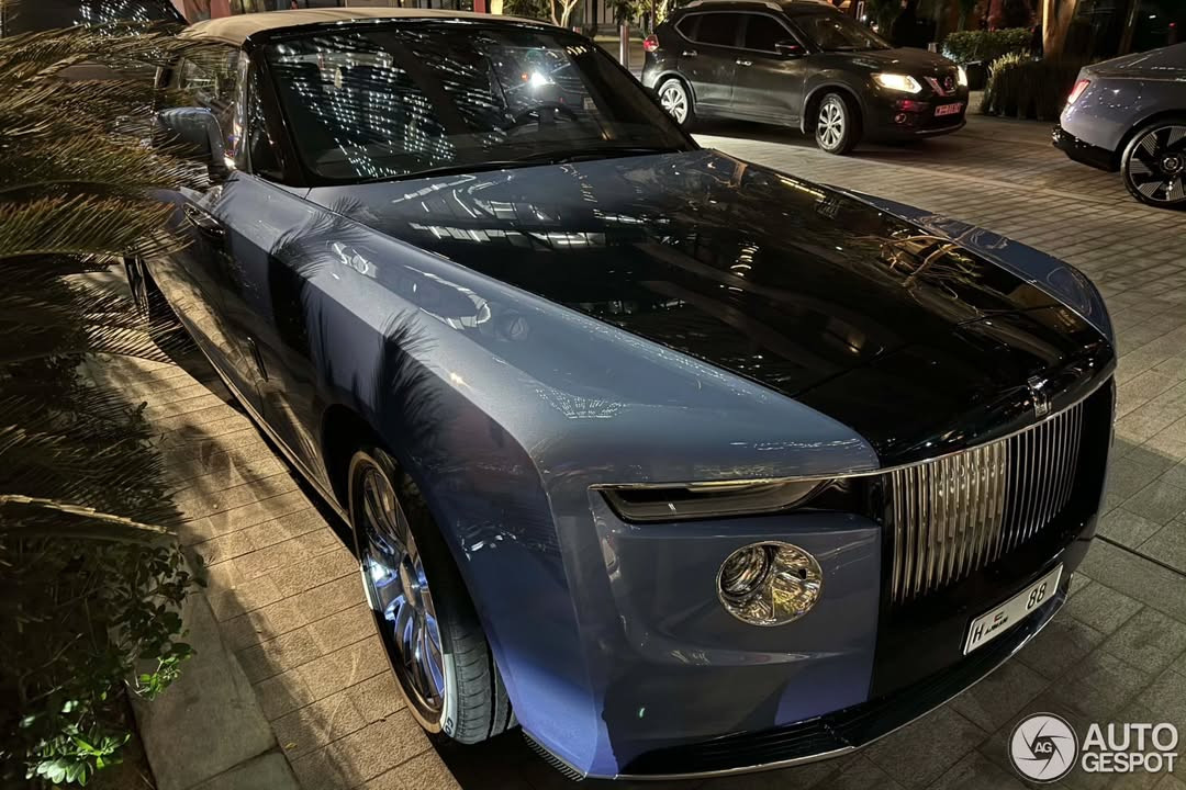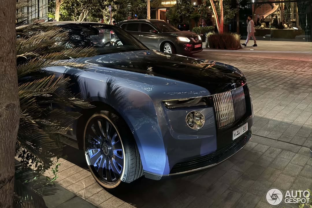 Mới đây, một trong 3 chiếc xe siêu sang Rolls-Royce Boat Tail được bắt gặp tại Dubai, Các Tiểu vương quốc Ả Rập Thống nhất. Đây cũng chính là phiên bản đầu tiên từng được hãng công bố năm 2021 với ngoại thất tông xanh chủ đạo và mui màu xám.